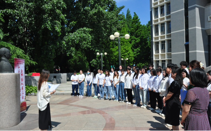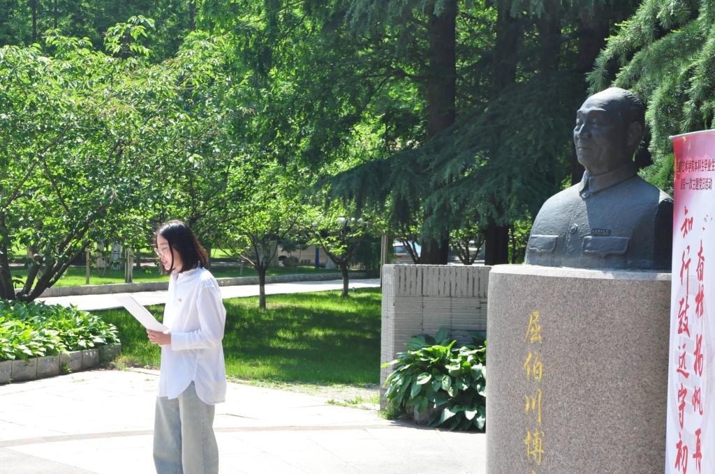 首先,由校团委宣传部部长冯立芳老师,为毕业生党员讲最后一次党课,重温屈伯川的事迹和精神。在冯老师的讲述中,回顾屈伯川院长用一生书写无私奉献,用一生树立党员楷模。听着冯老师带我们回顾屈老的一生,驻足于他的雕像前,这位老一辈无产阶级革命家和教育家的音容笑貌犹在眼前。屈老的故事,被每一个大工人珍藏在记忆里,他将自己一生的半生的心血奉献给了教育事业、奉献给了大工,他身上所传递出的大工红色基因激励着一代代大工人在兴校报国的征程中奋斗不辍。屈老的精神深深融入大工的血脉,滋养着一代又一代的大工人。