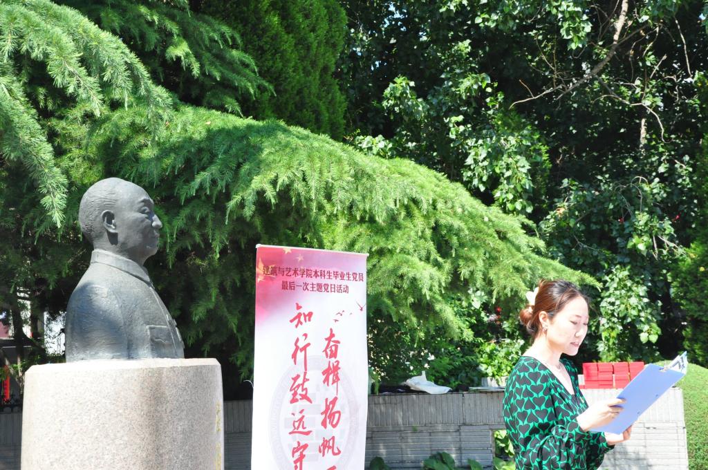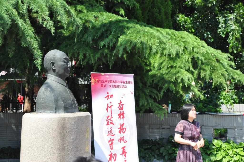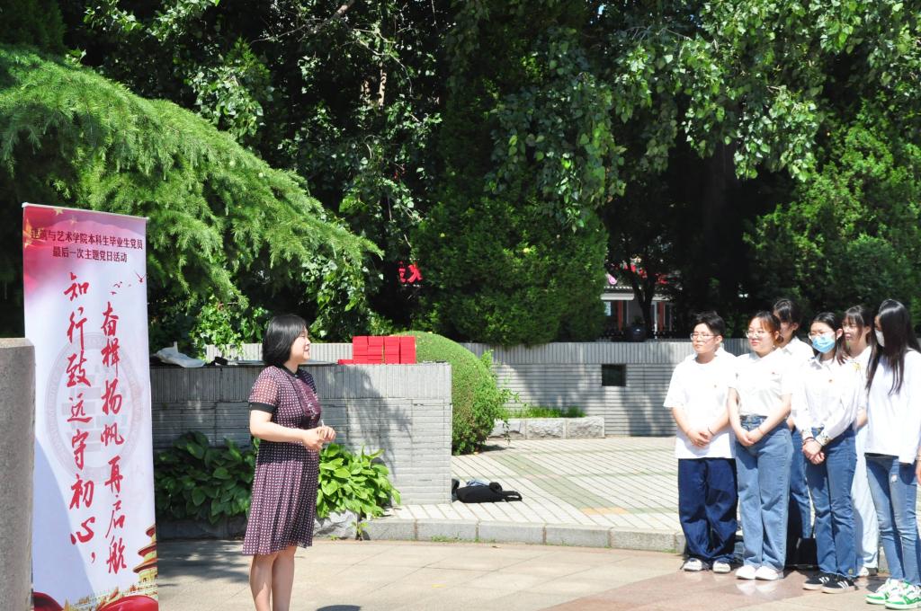 为深入学习贯彻习近平新时代中国特色社会主义思想和党的二十大精神,青春心向党、建功新征程,在2023届毕业生即将离开母校、踏上人生新的征程之时,建筑与艺术学院本科生党支部在伯川图书感言南侧屈伯川像前,隆重举行“知行致远守初心,奋楫扬帆再启航”本科生支部毕业生党员主题党日暨2023届本科毕业生党员最后一次党日活动。支部师生党员45人参加,建筑与艺术学院党委书记常亮、党委副书记兼副院长纪委书记张硕、校团委宣传部部长冯立芳、党委组织委员马琳出席活动。本次主题党日活动由本科生辅导员师生纵向第一党支部副书记田曦璠主持。