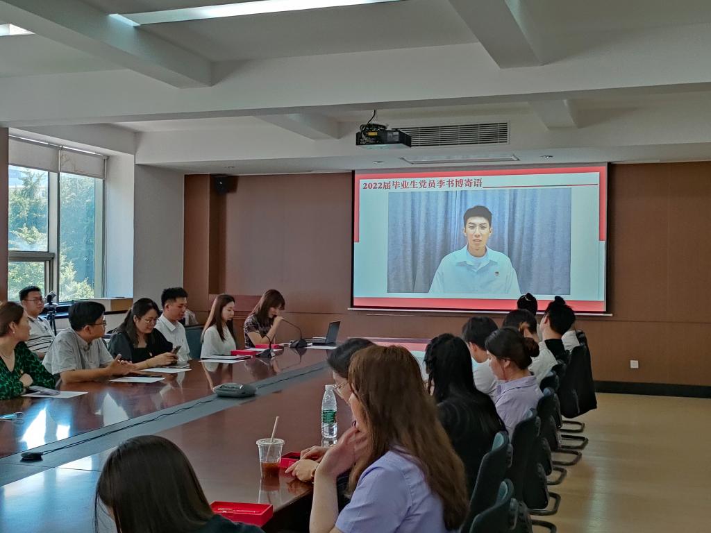 活动进行第三项,学院2022届毕业生、辽宁省优秀共产党员李书博同志为毕业生党员送来视频寄语。他表示,毕业是终点同时也是步入社会大学的一个新起点,即将踏出校门,要时刻保持热爱和进取的心,怀揣梦想,多体验、多尝试,相信自我,不负青春!