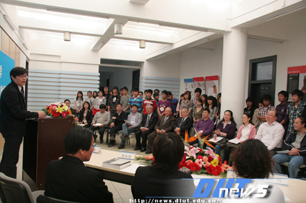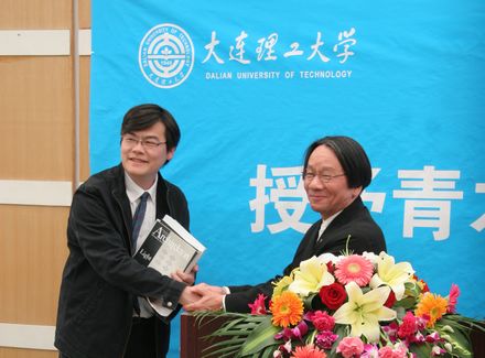接着,青木茂教授发表感言。他对大家在此地为他举行仪式表示十分感谢,对能够作为大连理工大学的客座教授深感荣幸。青木茂教授介绍了自己的研究项目,希望将自己的研究课题展现给大家,与建艺学院的老师同学们一起研究,互相交流,共同进步。同时,他也表示以后会经常来大连,与我校进行交流合作,与建艺学院的师生一起研究,争取在新技术上有所突破。青木茂教授还将自己所做项目的相关书籍和材料赠与建艺学院。