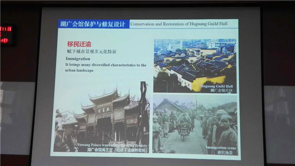 杜春兰教授从城市变迁开始讲起,以城市肌理为核心来为学生开始讲解。用历史的演进的眼光讲述着城市的历史文化的保护。杜春兰教授以重庆城市的发展为核心讲解着历史景观的保护。她通过重庆古庙保护、磁器口保护、历史街区保护等案例讲解城市历史保护的重要性。又通过重庆城区传统风貌的保护利用规划和湖广会馆保护与修复设计的案例逐渐向同学展开了一个全新的历史性景观环境的保护与实践的思路。全场讲座她娓娓道来,深入浅出的讲解令学生获益匪浅。
