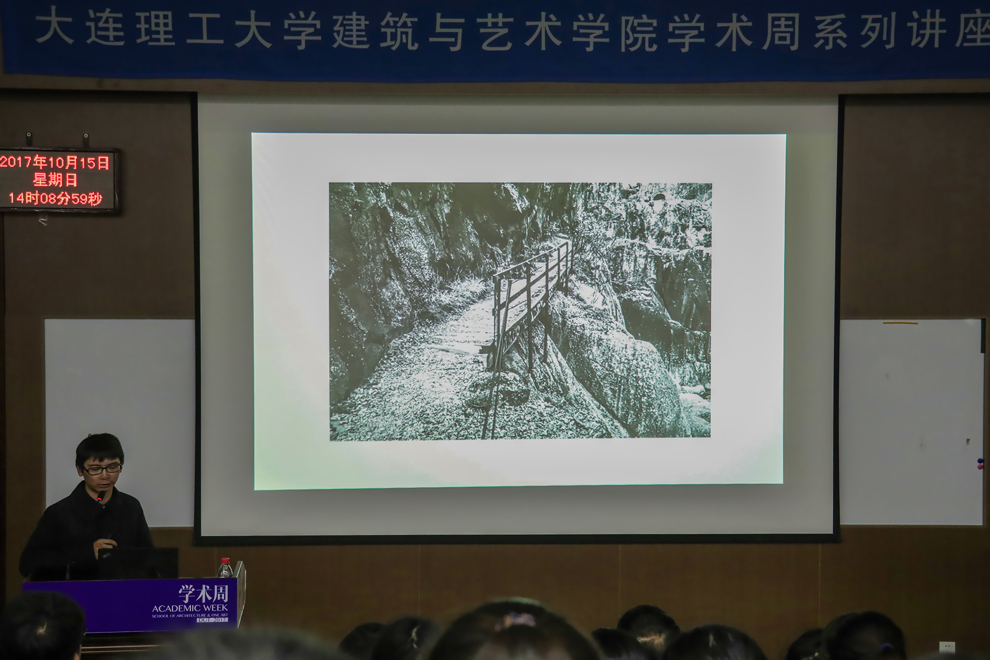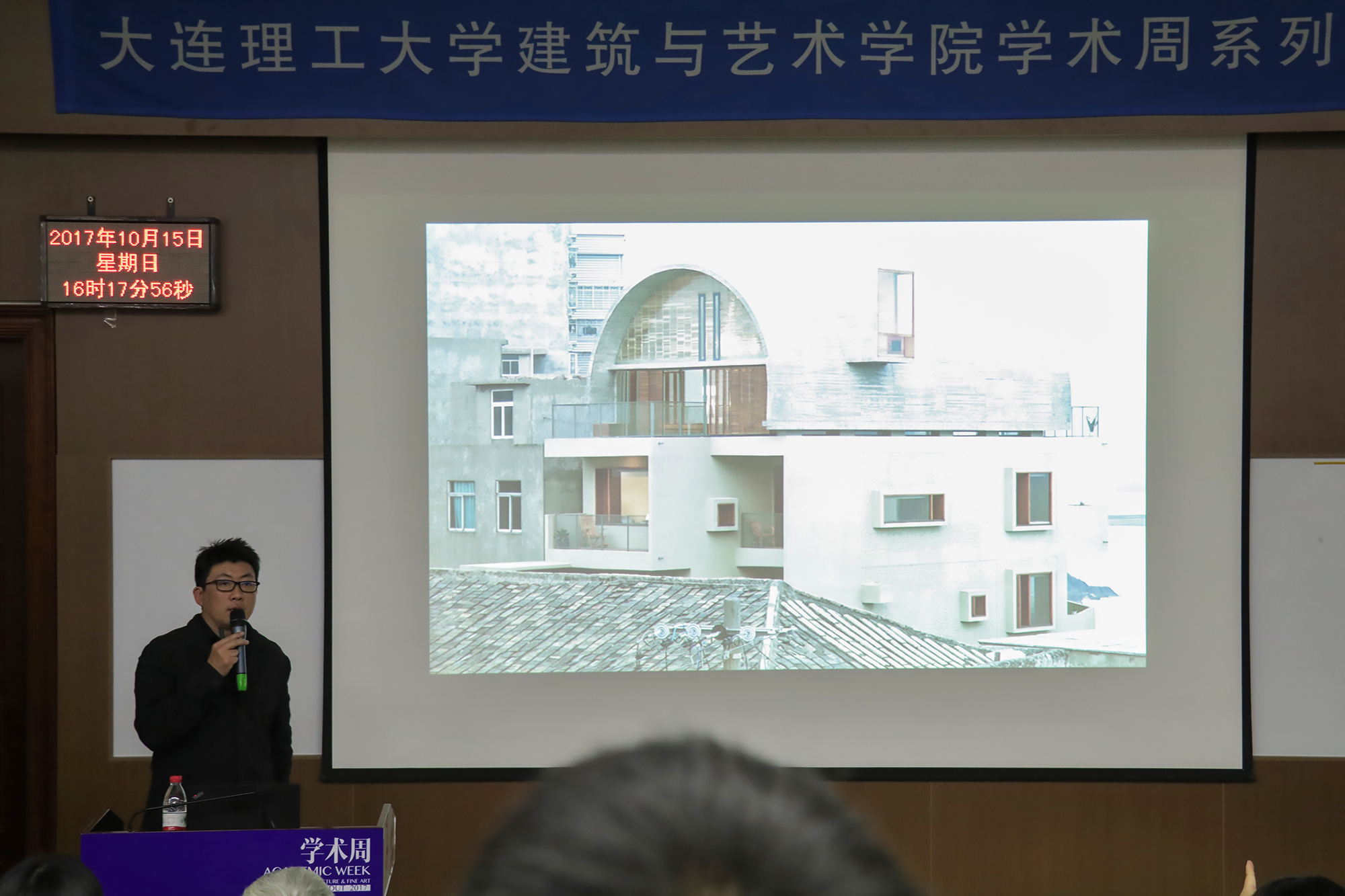 10月15日下午两点,大工建艺学院学术周活动有幸分别邀请到董功先生和郭廖辉先生,分别以“介入•共生”和“彼得•卒姆托建造中”为主题在二馆309教室顺利开展讲座。讲座由建艺学院范悦院长主持,现场座无虚席,大连市建筑行业同仁及众多建艺师生慕名前来参加讲座。