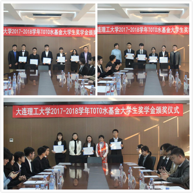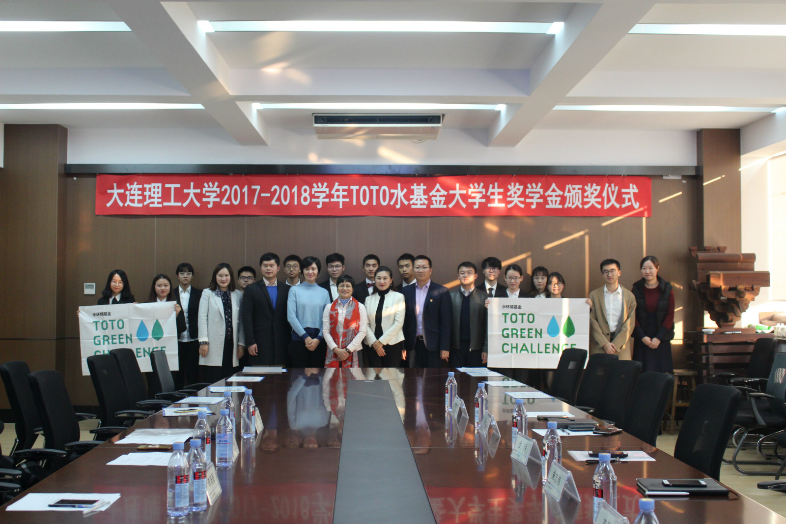 近日,2017-2018学年大连理工大学TOTO水基金大学生奖学金颁奖仪式在建筑与艺术馆314会议室成功举行。中华环境保护基金会项目主任汪亦红女士、项目主管李黄豪先生和东陶(中国)有限公司代表赵婷婷女士以及学生工作处、校友工作处、建筑与艺术学院和化工与环境生命学部领导以及全体获奖学生共同参与了颁奖仪式。颁奖仪式前,校方代表与设奖方代表就奖学金合作等进行了热切会谈。