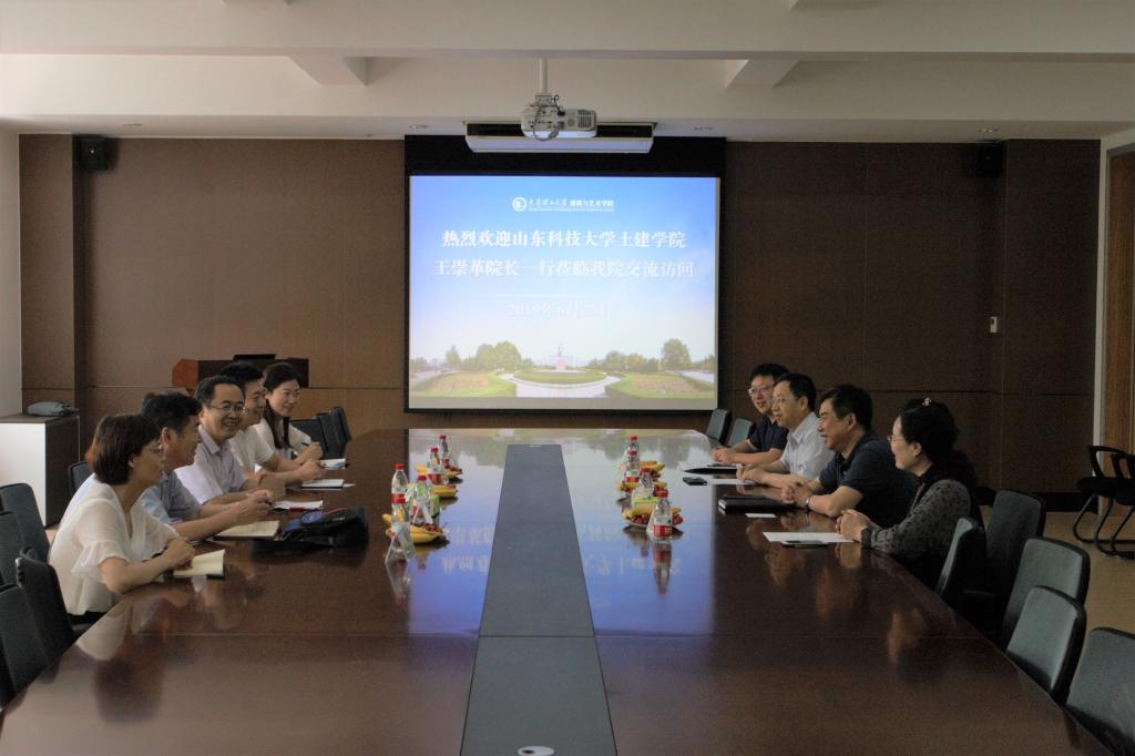 6月26日上午,山东科技大学土建学院院长王崇革、建筑系主任许剑峰,以及吕京庆、李冰与房辉一行五人来学院交流访问。我院院长唐建教授接待了来访客人,副院长蔡军教授及李世芬教授、路晓东副教授陪同交流。