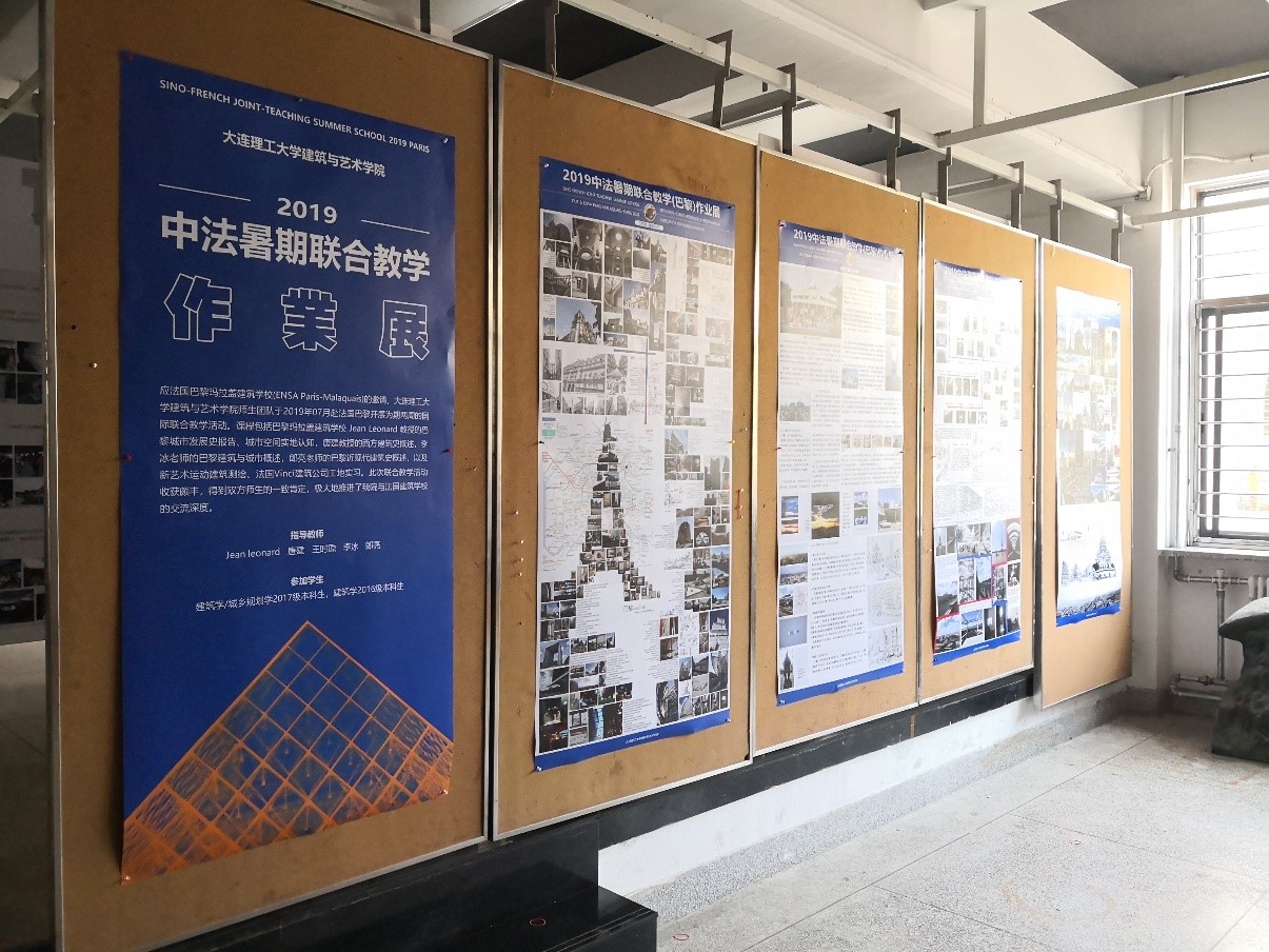 2019年9月29日,“中法暑假联合教学作业展”在建筑艺术馆一楼展厅展出。7月份,大连理工大学建筑与艺术学院师生团队赴法国巴黎开展为期两周的中法国际联合教学活动,指导教师为我院教师唐建、王时原、李冰、郎亮以及法国巴黎玛拉盖建筑学校的Jean Leonard教授。