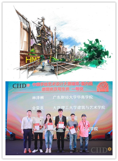 近日,建筑与艺术学院2019级艺术设计类专业金荣美同学的手绘作品《城市记忆--老厂房》荣获2019年第十六届CIID中国手绘艺术设计大赛学生组表现类一等奖,建筑与艺术学院院长唐建教授荣获2019年第十六届CIID中国手绘艺术设计大赛“最佳导师”奖。