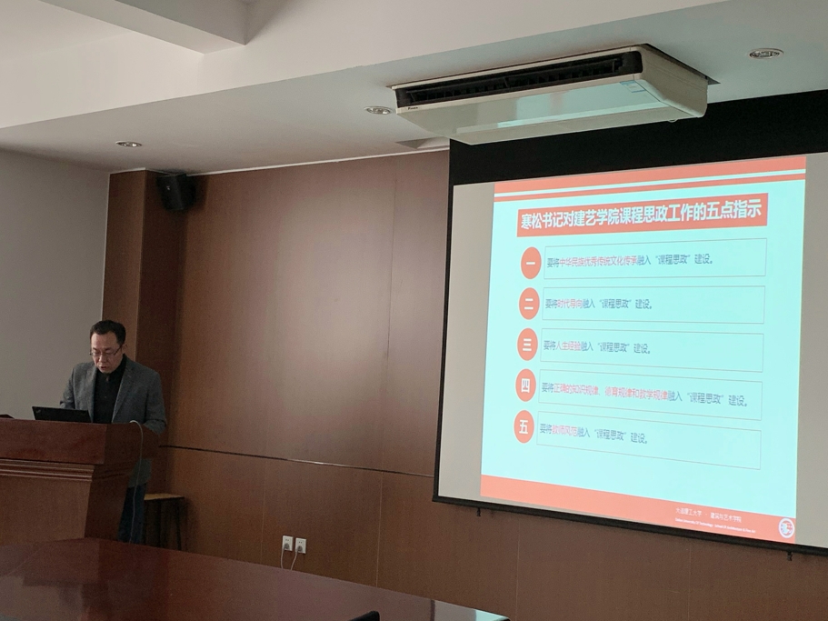 随后,副院长于辉为与会专家从“课程思政”的要点、王寒松书记对建艺学院“课程思政”工作的五点指示、学院课程特点以及“课程思政”的构想和举措四个方面详细介绍了建艺学院“课程思政”的建设情况。