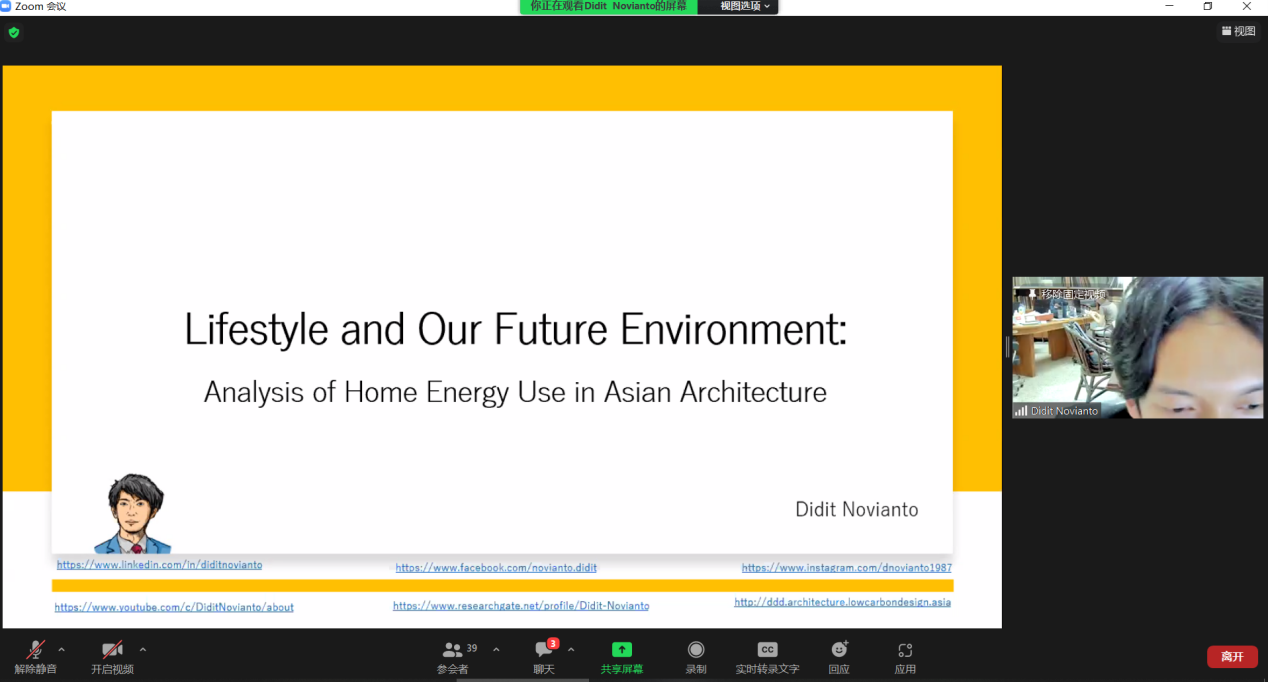 Didit Novianto发言 Lifestyle, and our Future Environment: Analysis of Home Energy Use in Asian Architecture生活方式与我们的未来环境:亚洲建筑中的家庭能源使用分析