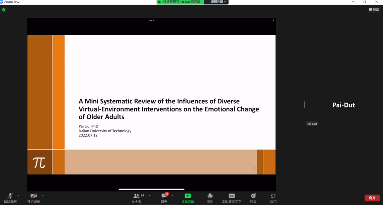 刘湃讲师发言 A Mini Systematic Review of the Influences of Diverse Virtual-Environment Interventions on the Emotional Change of Older Adults