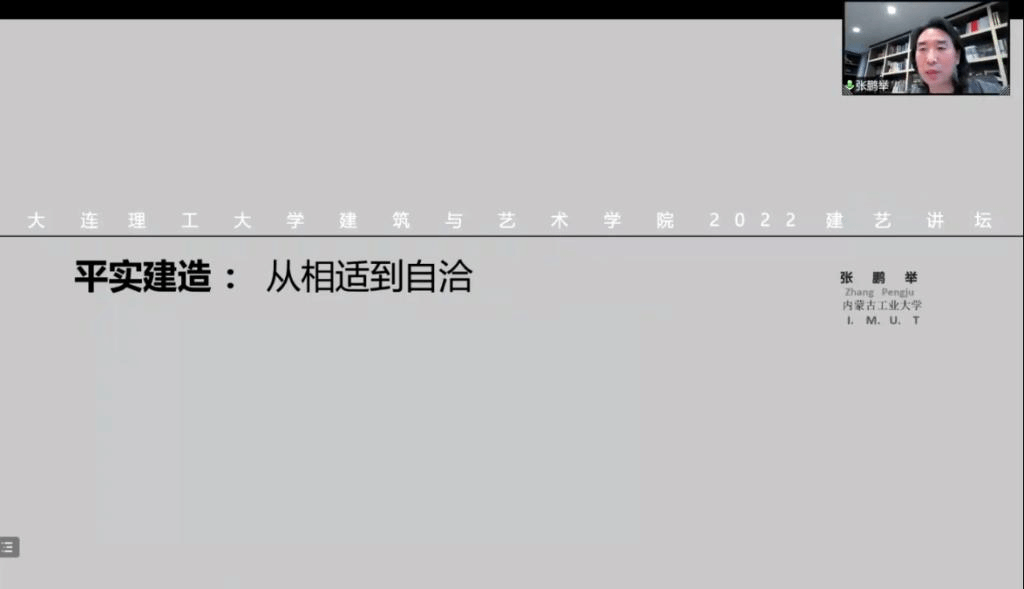 张鹏举教授秉持平实建造的价值观和行动准则,谈到进行地域实践时应如何考虑场地与场所的营造、阳光与风等气候因素、建筑的体量与界面设计、建筑的材料与建造、空间内与外的划分、光影的变化等方面。将项目划分为生长于自然环境和生长于建成环境两类,进行了详细的分析讲解。在讲座的最后,张鹏举教授针对在线研究生同学和本科同学的问题进行了详细解答,并与学院教师进行了学术探讨。