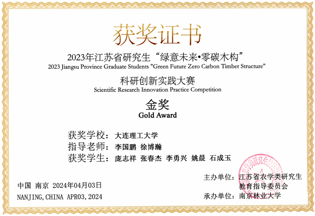 近日,由江苏省农学类研究生教育指导委员会主办,南京林业大学承办的2023年江苏省研究生“绿意未来·零碳木构”科研创新实践大赛最终结果公布。