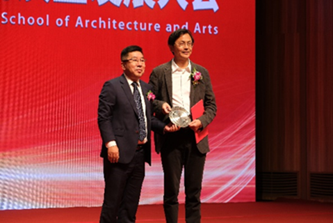院长蔡军教授为教师颁奖,赠送寄语送出纪念奖牌。优秀的教师是建筑与艺术学院的骄傲,也是高质量办学的底气。