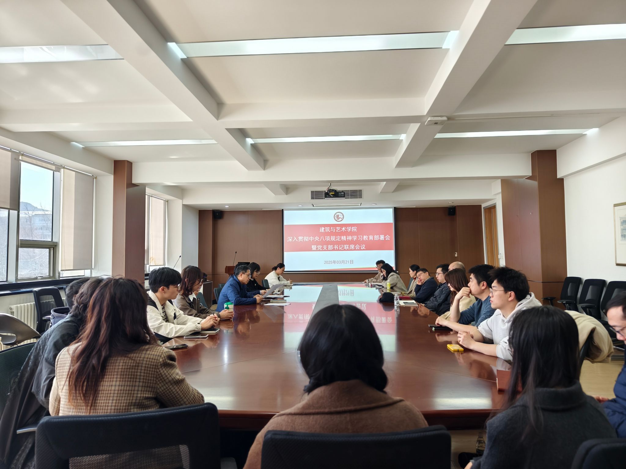 3月21日下午,建筑与艺术学院召开深入贯彻中央八项规定精神学习教育部署会,学院党政领导班子、党委委员、师生党支部书记和副书记参会,会议由学院党委书记常亮主持。