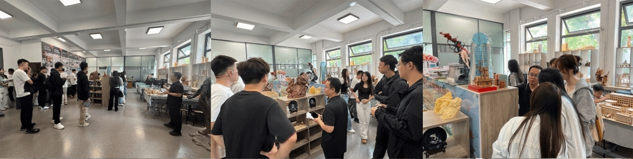 在创艺工坊(建馆A108),学生现场观看了虚实结合的模型展示技术。实验教师不仅讲解了各类模型的成型工艺与展示手段,更着重强调了技术操作背后的安全规范。使学生深刻认识到严谨的操作流程是创新创意得以安全实现的重要基石。