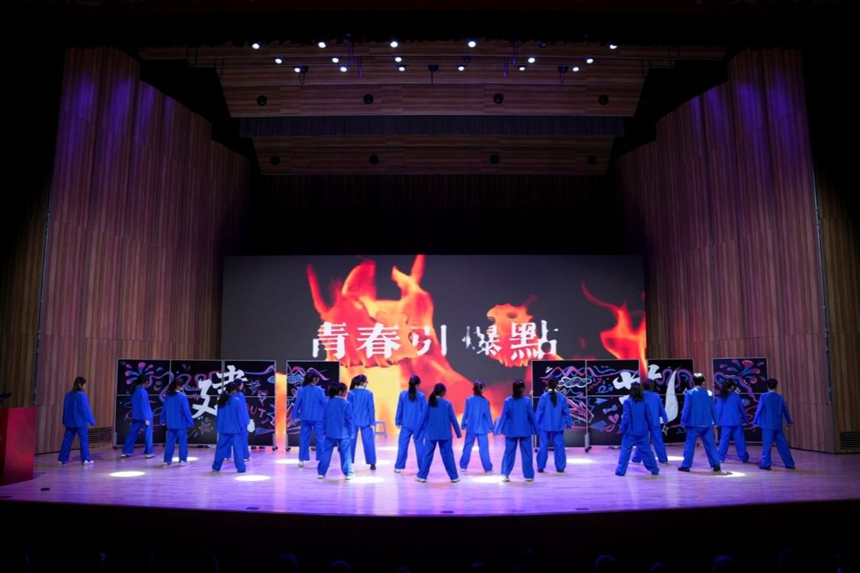 在大会上,经过四十余天精心打磨的"峰岚杯"选送节目《青春引爆点》精彩上演。六十余名建艺学子用充满活力的舞步,展现了当代青年的蓬勃朝气。
